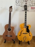 Gerold #4 Detroit Standard Bass, Fender Precision Bass, Guild A-150 Savoy Archtop, Yamaha and Takamine steel string acoustic guitars, La Mancha nylon string acoustic guitar, Akai MPK mini MIDI controller, AKG C400B condenser mic, PreSonus Eris E5 studio monitors, Focusrite 2in2 audio interface on a Macbook Pro with Logic Pro and Garageband.