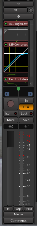 That Tech21 uses analog circuits and also adds a bit of hum, so in #300426 for instance, I let it away and went in directly. I didn't even use amp sims in that one, just a high-/lowcut, a mono compressor, and a limiter on my single bass channel as in the pic below.