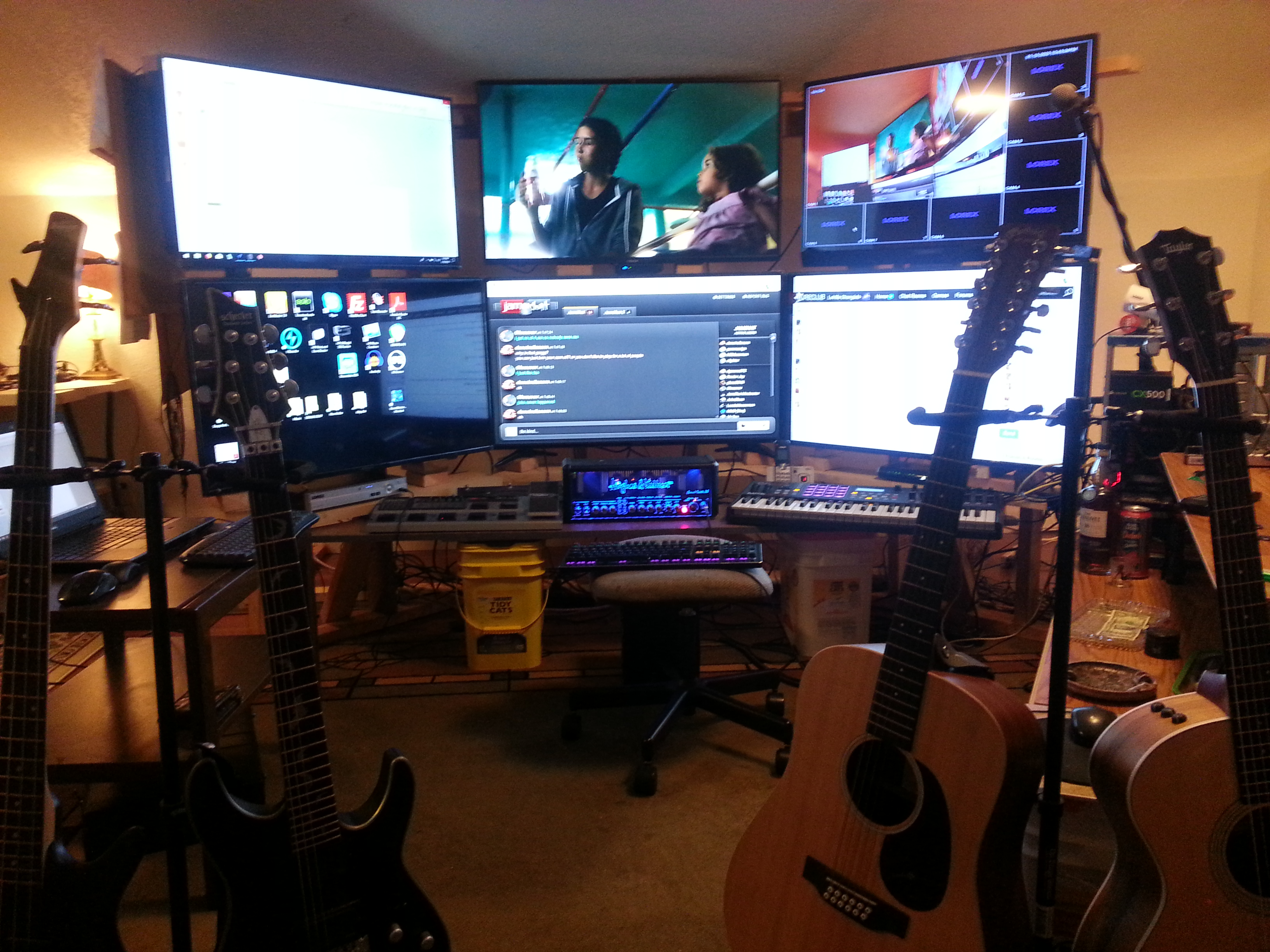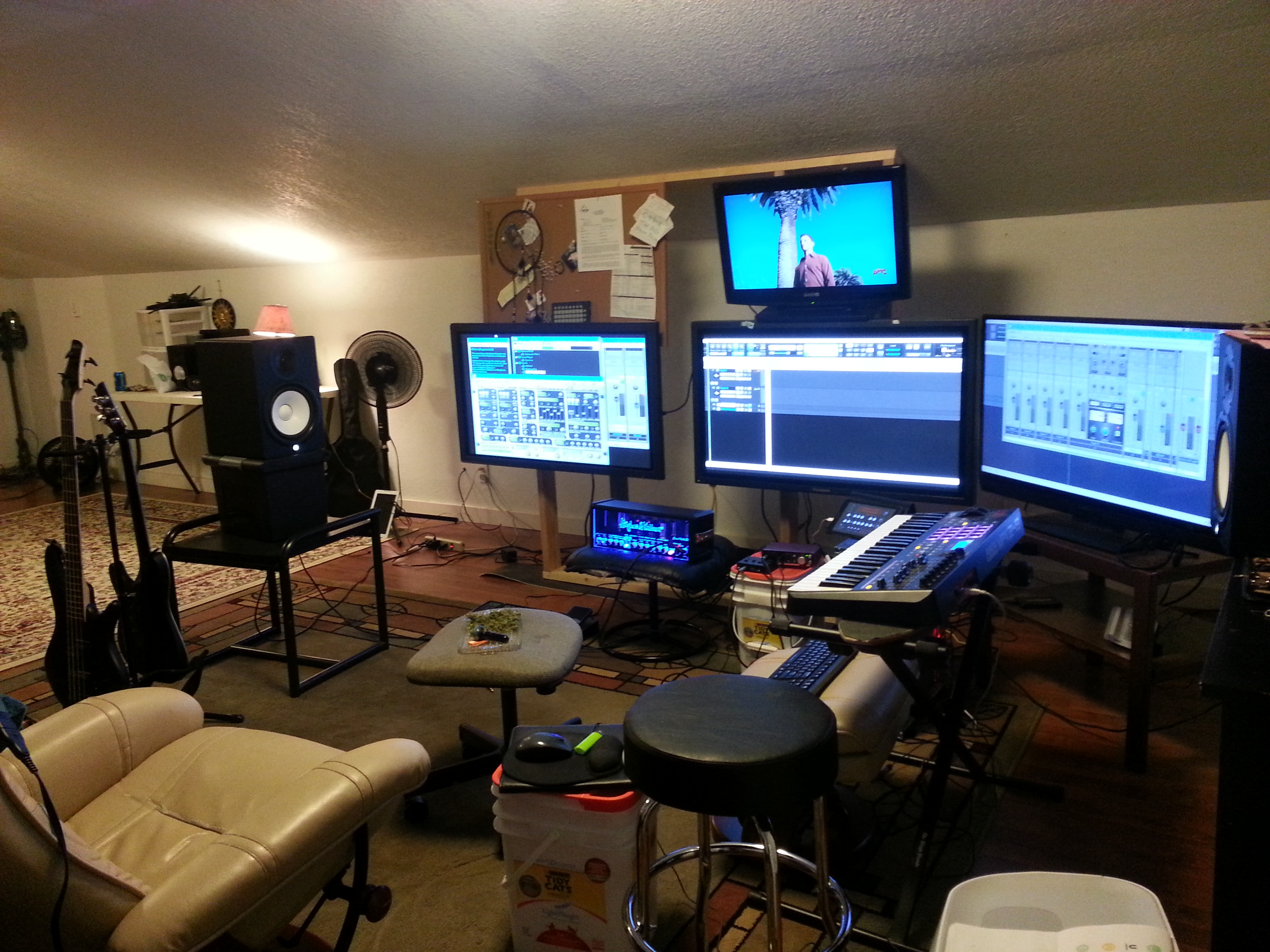 Studio's finally complete after over a year in my new house. Both kits in, gear in. Just need time on my side now to get some proper recordings done.