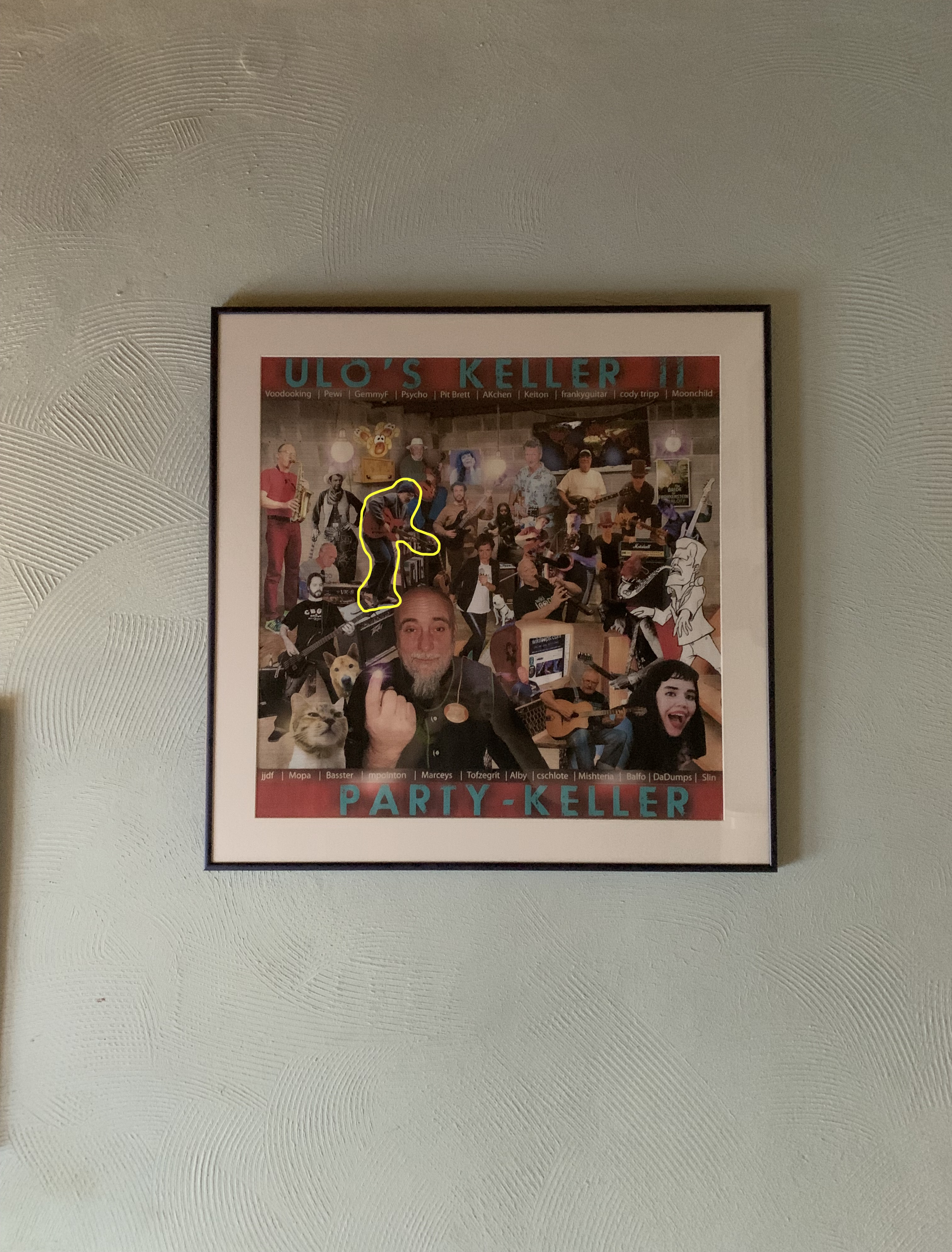 I really liked his sometimes really crazy song ideas. I could also always count on his help. A few years ago Jim made an album here in WL "Ulo`s Keller 2 - Party Keller" He also made the cover and I requested the file for the album cover in high resolution, he also sent me. I printed it out in high resolution on our plotter (60cm x 60cm) in the office and then had it professionally framed. And now finally, after a few years and quite a few redesigns, I had found a permanent place for it a few weeks ago. I see it every day and am always reminded of you Jim. Rest in peace my friend, you will always be with me.